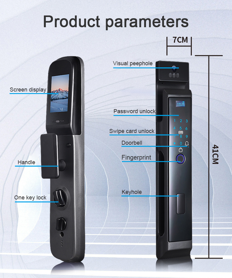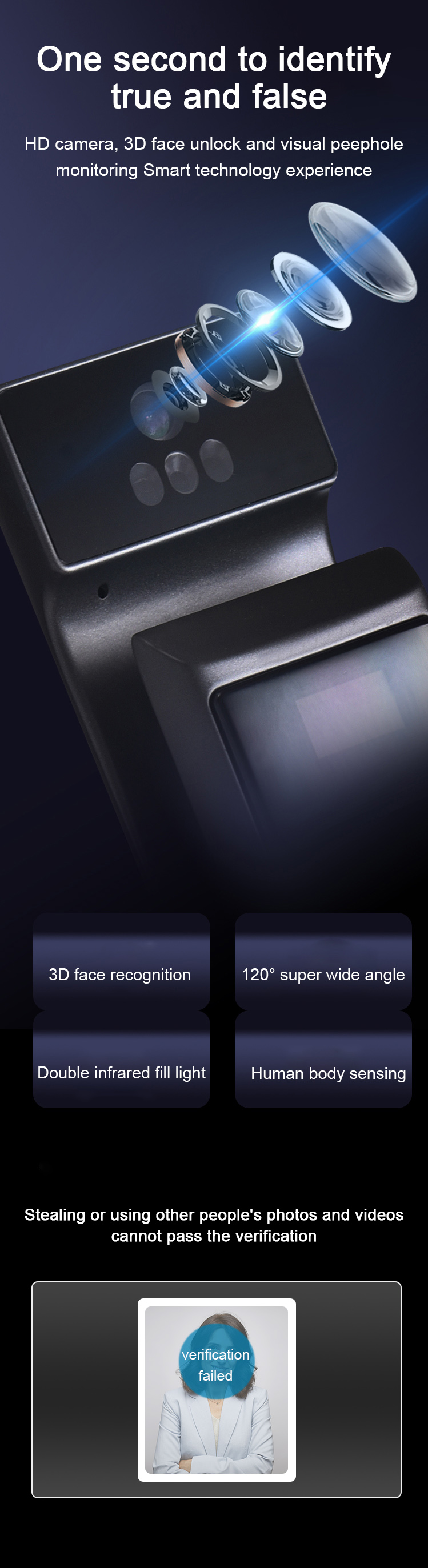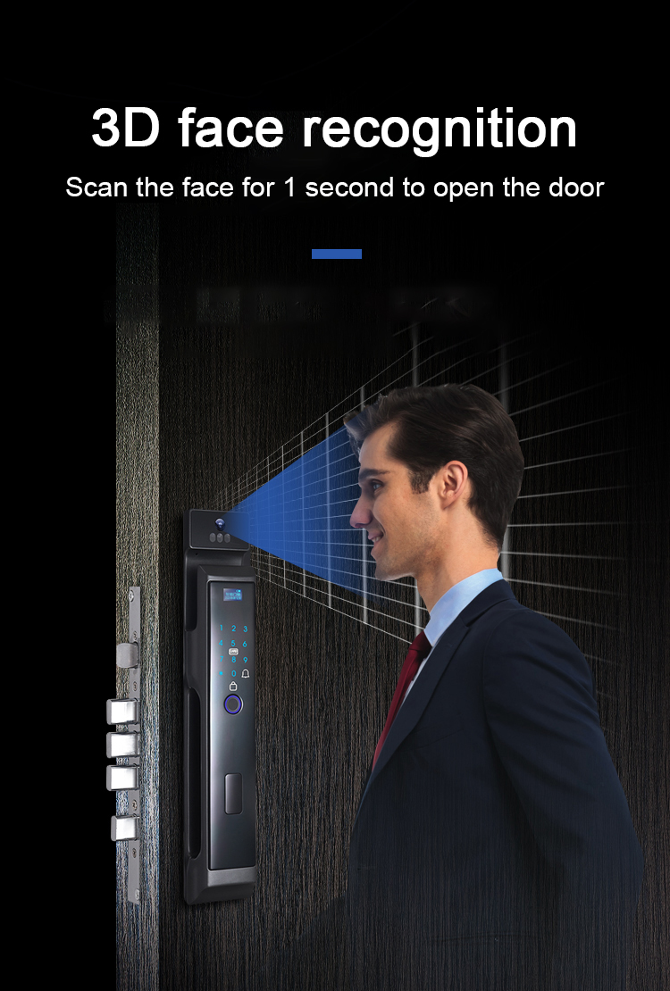 TUYA APP remote unlocking customized 3D face recognition smart door lock touch keyboard electronic