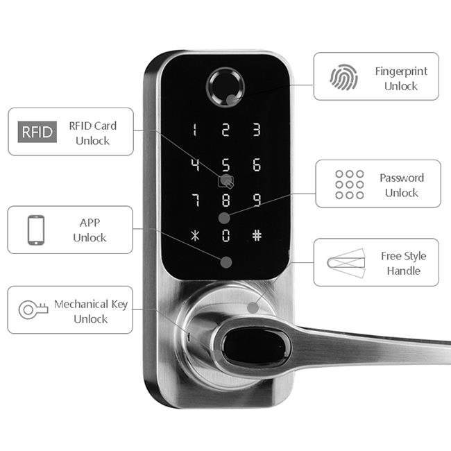 APP + Fingerprint + IC Card + Password + Key