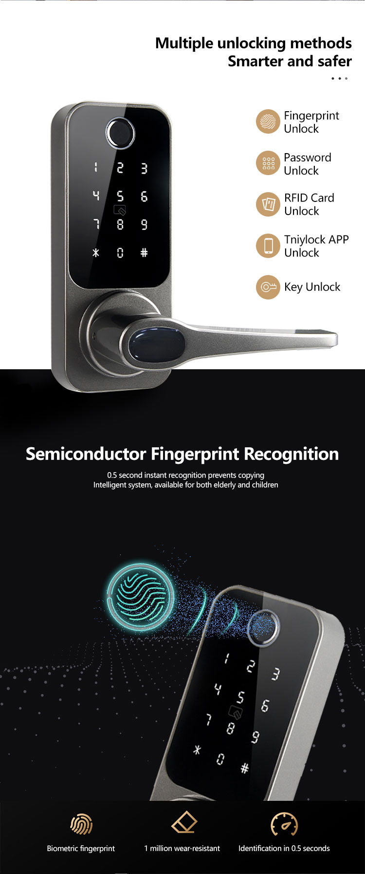 Biometric Intelligent ttlock electronic fingerprint smart lock High Security smart door lock