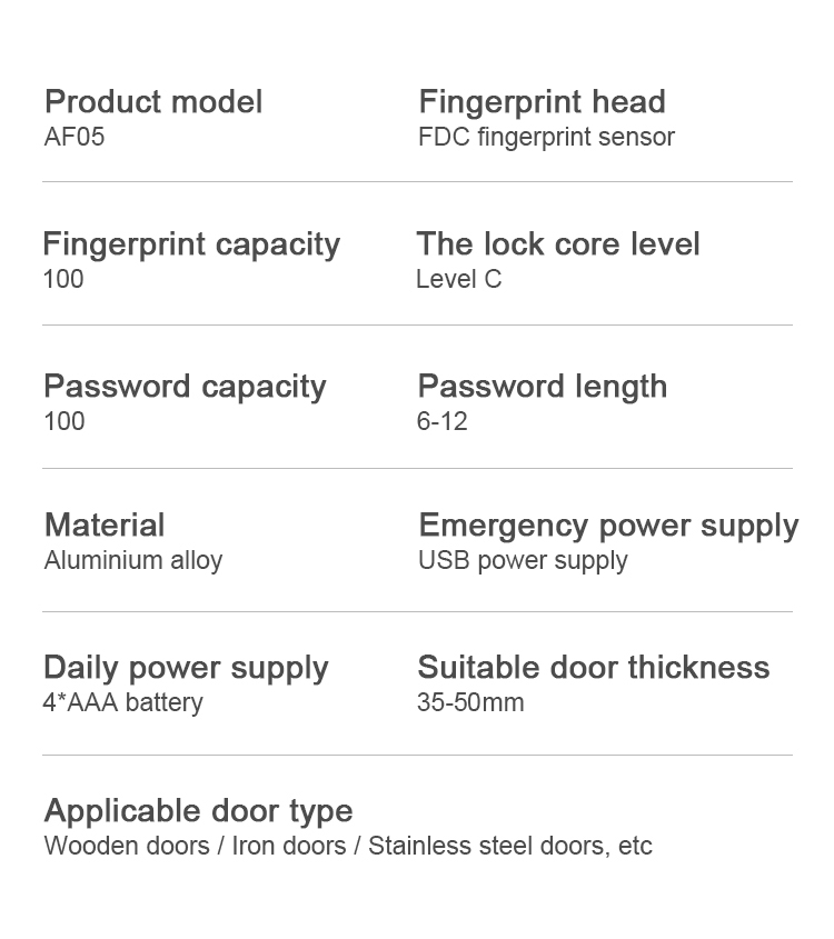 1. Suitable for most locks in the United States 2.TUYA APP + fingerprint + password + IC card + key 3.Type-C emergency charging port
